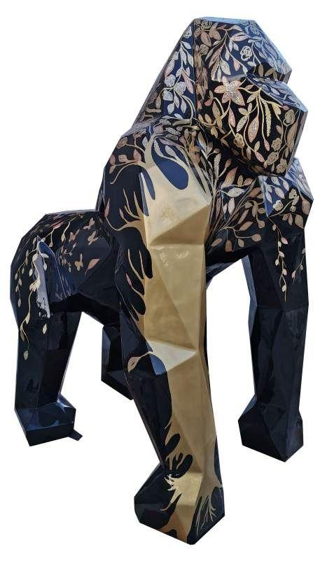 Dimension: H: 128 cm x B: 78 cm x L: 118 cm. Material: Kunstharz (35 kg). Farben: schwarz, gold